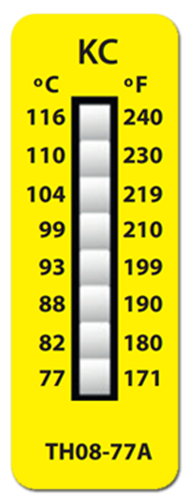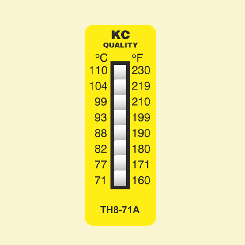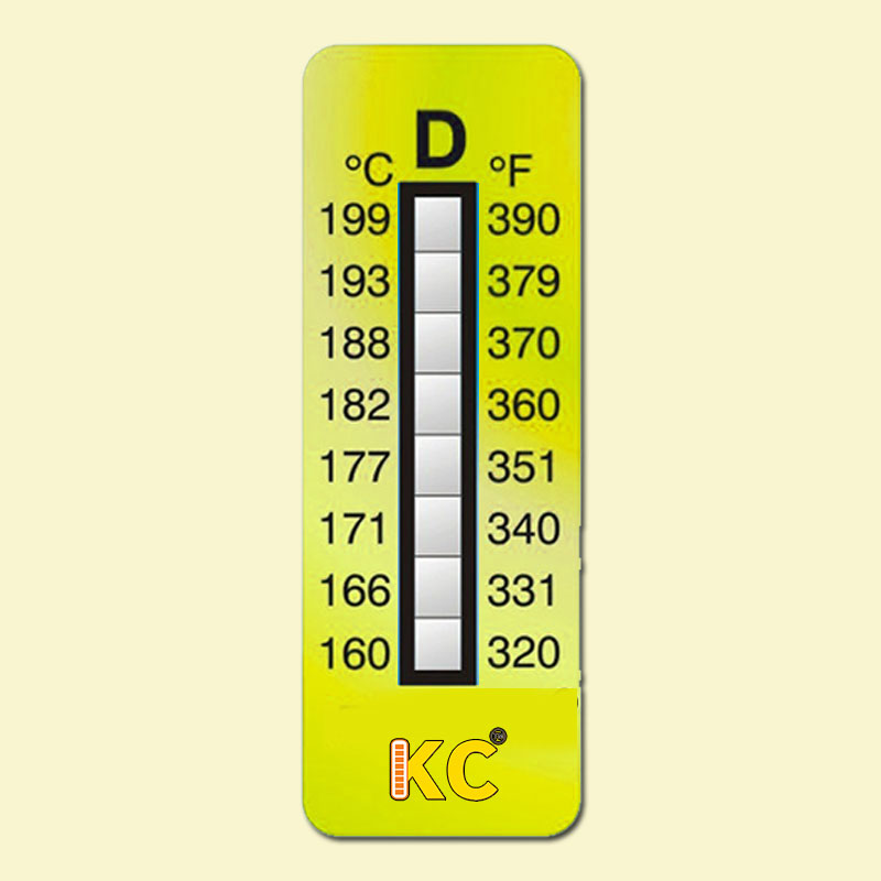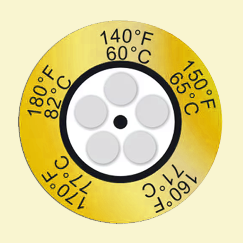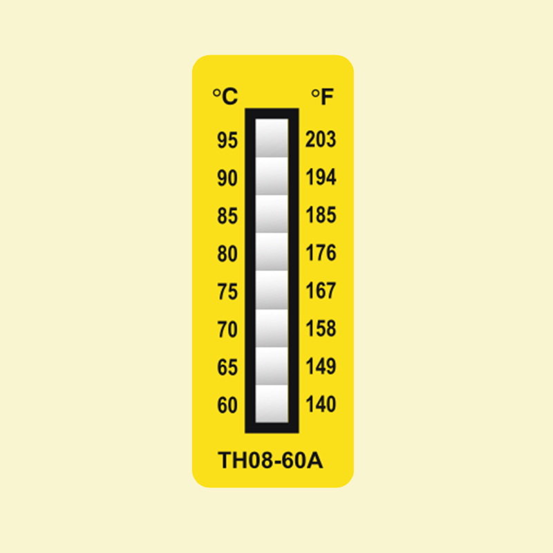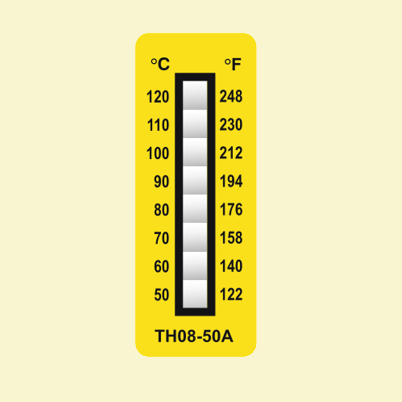 Range: 60°C – 82°C • 5 Levels • Pack: 50 • Self-Adhesive • °C/°F