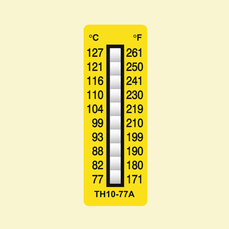 Range: 65°C – 93°C • 5 Levels • 12×32 mm • Pack: 10 • °C/°F